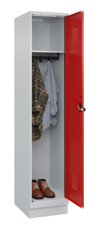 Je Abteil ein festverschweisster Hutboden und darunter eine Kleiderstange mit 3 verdrehsicheren Doppelschiebehaken